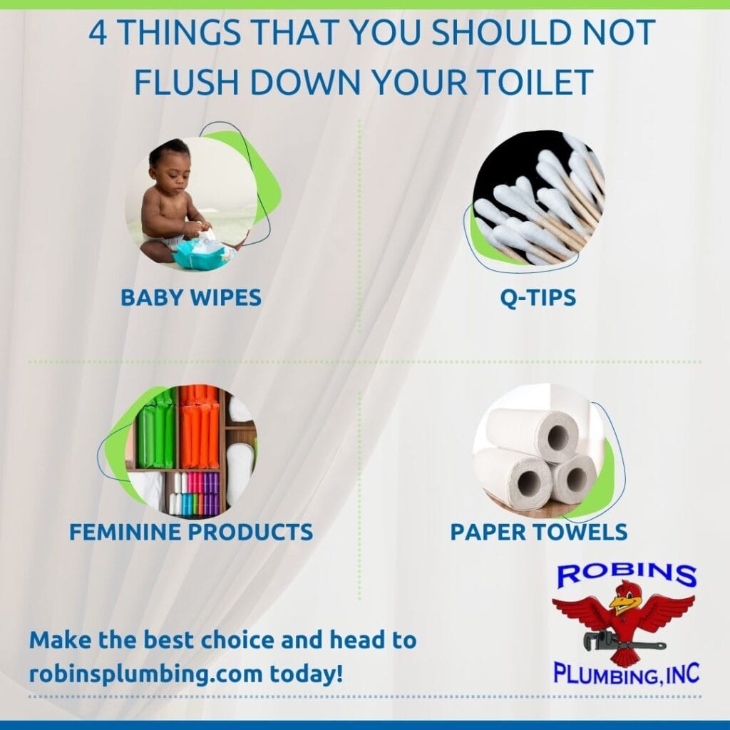We never really think about what and what not to flush down the toilet. We see it all the time. Unknowingly clients having to learn the hard way that some things, despite the box from the manufacturer saying safe to flush, should not go down your toilet.